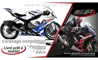 Pack Carénage competition en fibre de verre renforcé carbon/kevlar finition gelcoat blanc ou noir avec préparation peinture et décoration.