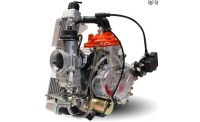 Carburateur, pompe à essence, pot d'échappement, radiateur, durites, batterie et support batterie, chargeur et adaptateur.