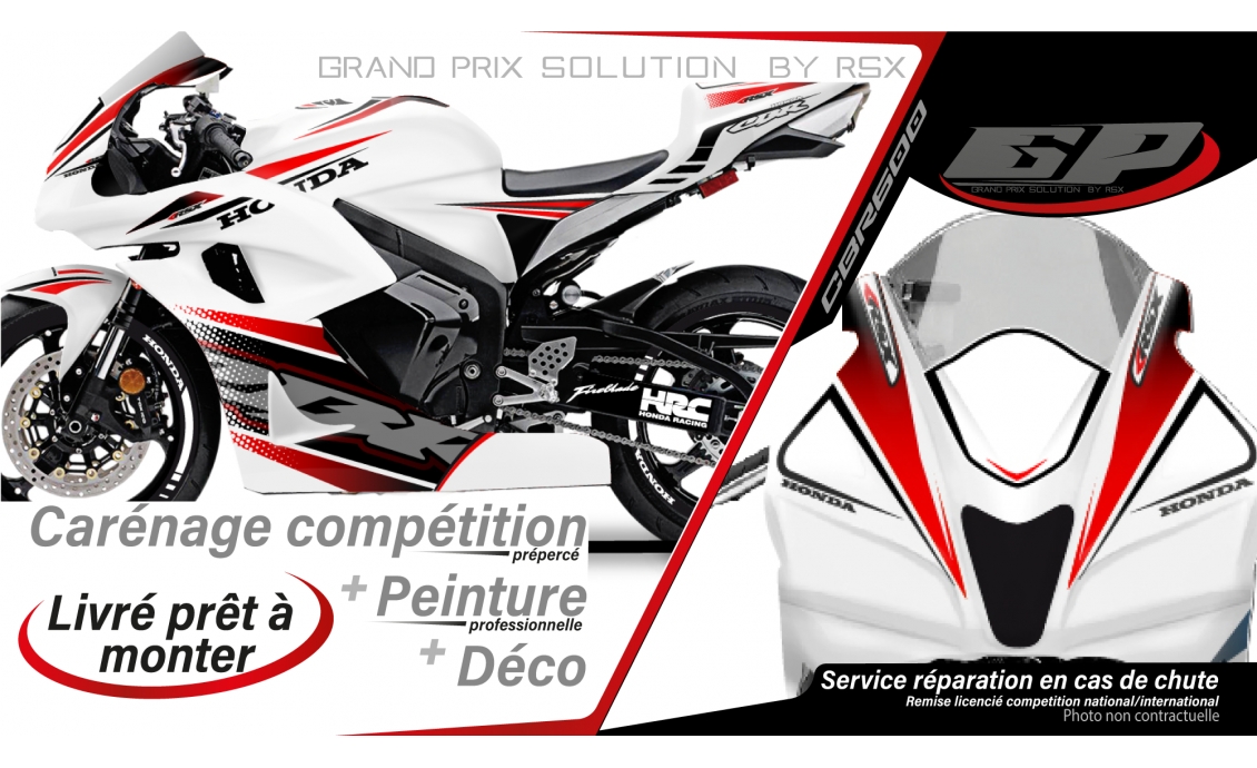 En cas de chute nous proposons un service racing avec prise en charge et reparation du carenage. Toutes les pieces, carénage et elements de décoration sont disponibles en SAV aux details.