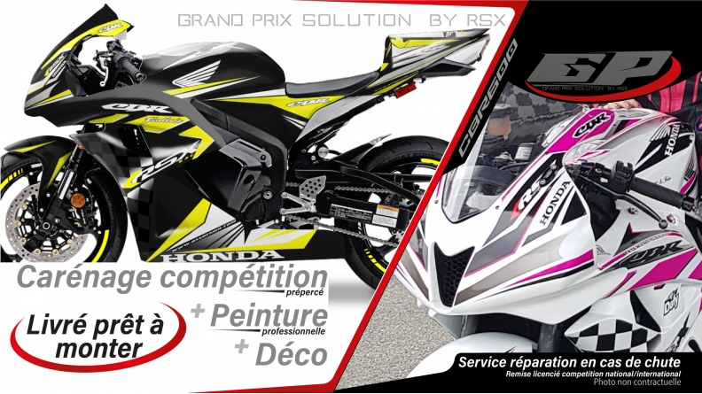 En cas de chute nous proposons un service racing avec prise en charge et reparation du carenage. Toutes les pieces, carénage et elements de décoration sont disponibles en SAV aux details.