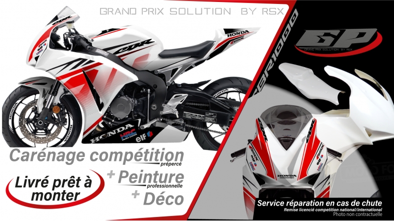 En cas de chute nous proposons un service racing avec prise en charge et reparation du carenage. Toutes les pieces, carénage et elements de décoration sont disponibles en SAV aux details.